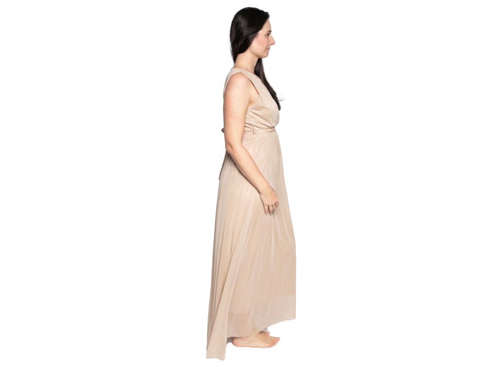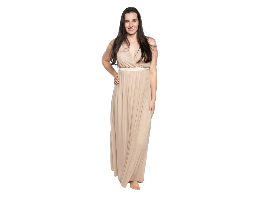 Nechte se okouzlit těmito nádhernými béžovými společenskými šaty, které vás promění v královnu večera! Tyto šaty nejsou jen obyčejným kusem oblečení, ale skutečným uměleckým dílem, které z vás udělá střed pozornosti na každé párty či slavnostním večeru.